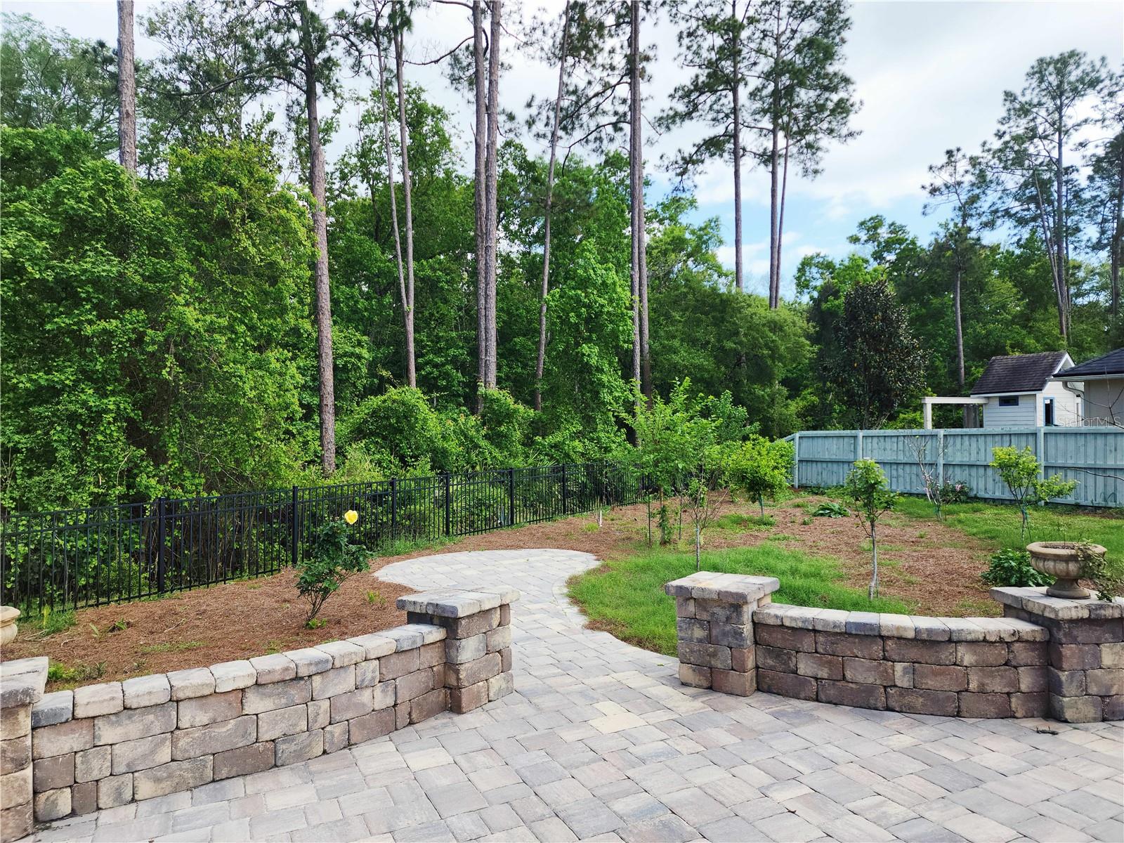 ** Private garden with newly planted fruit trees + wrought iron back fence – Your own peaceful retreat