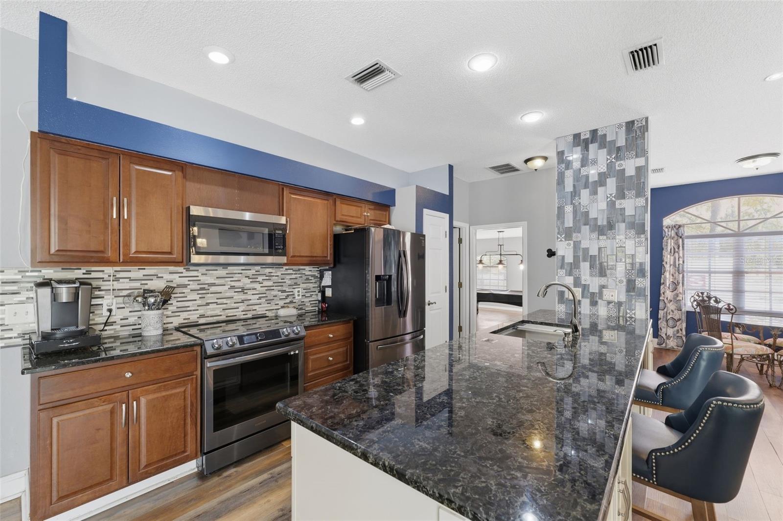 Step into this beautifully updated home featuring a 2024 kitchen remodel with stunning Volga Blue granite countertops, stainless steel appliances, extra deep stainless steel sink and a functional galley layout with pantry.